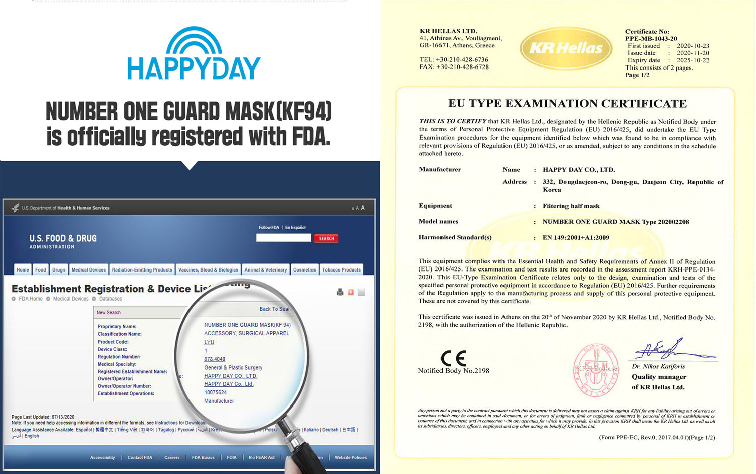 HAPPYDAY 2D KF94 Number One Guard White Face Mask for Adult (25 Packages)