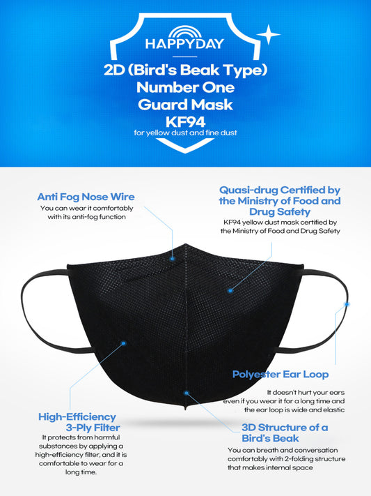 HAPPYDAY 2D KF94 Number One Guard Black Face Mask for Adult (25 Packages)