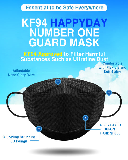 HAPPYDAY KF94 Number One Guard Black Face Mask for Adult (30 Packages)